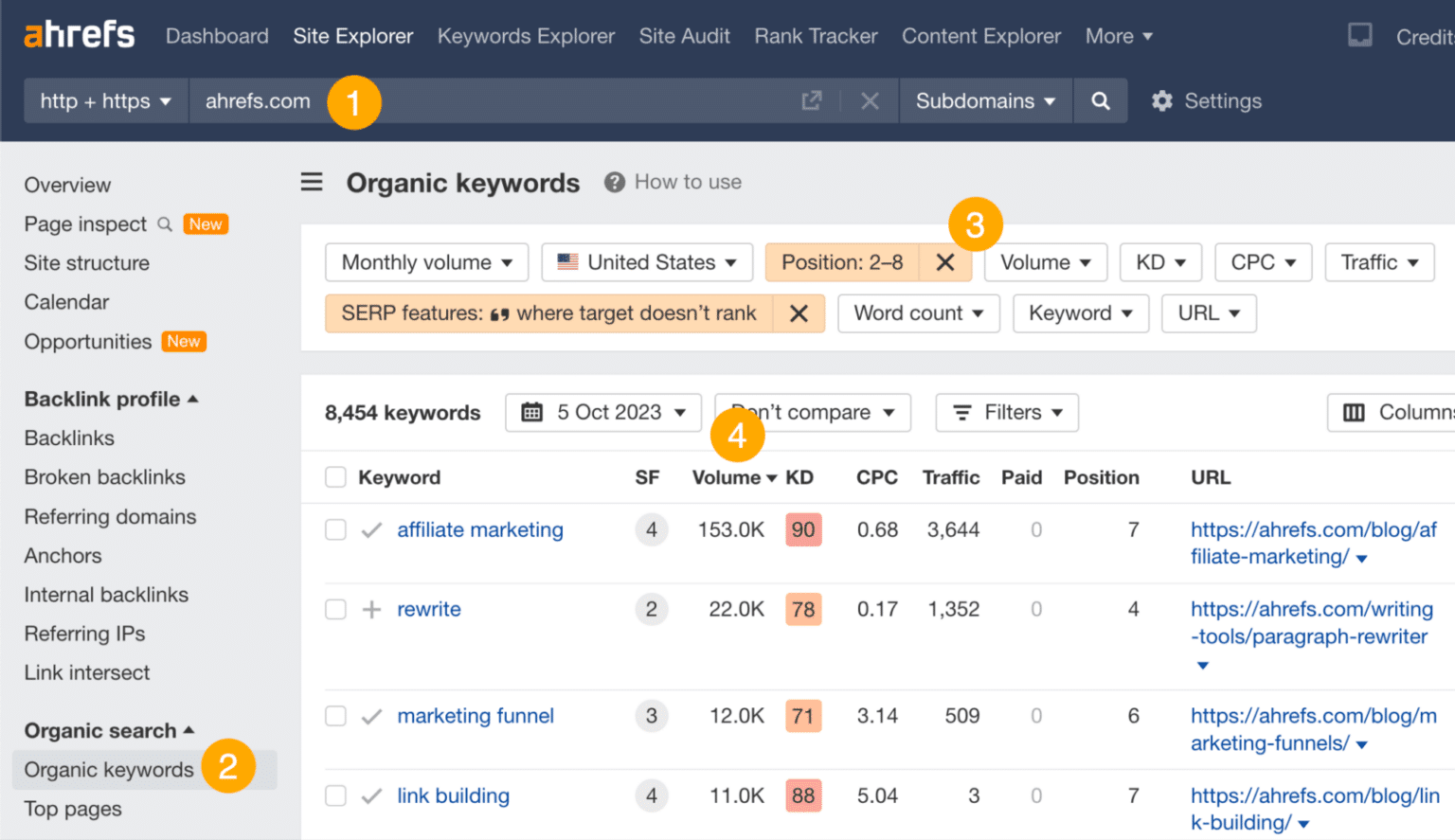 انتبه للمقالات التي يقع ترتيبها بين 2 و8 في صفحة نتائج البحث والتي تستهدف كلمة مفتاحية يعرض فيها جوجل فعلاً featured snippet ولكن لموقعٍ آخر غير موقعك. يمكنك الاستعانة بـGoogle Search Console أو أدوات السيو الأخرى مثل Ahrefs للقيام بذلك.