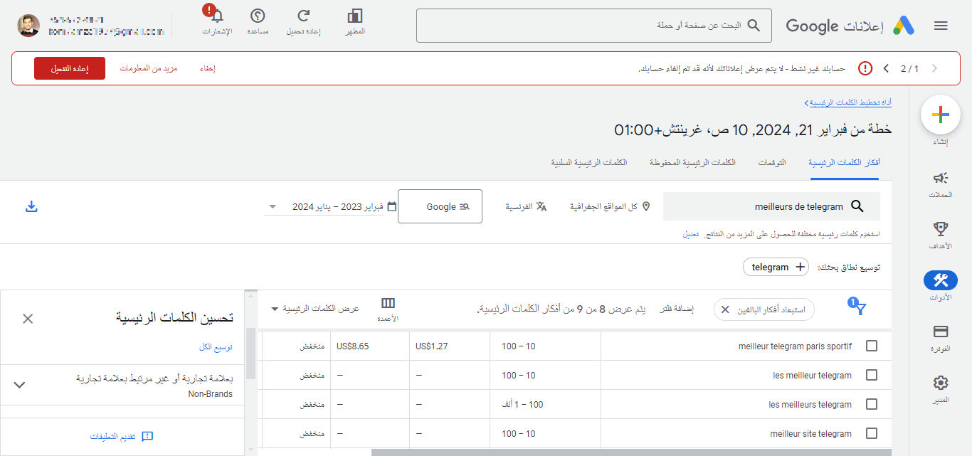 لا تنسى أن عليك استهداف الكلمة المفتاحية المترجمة، مثل الفرنسية كما في المثال السابق.